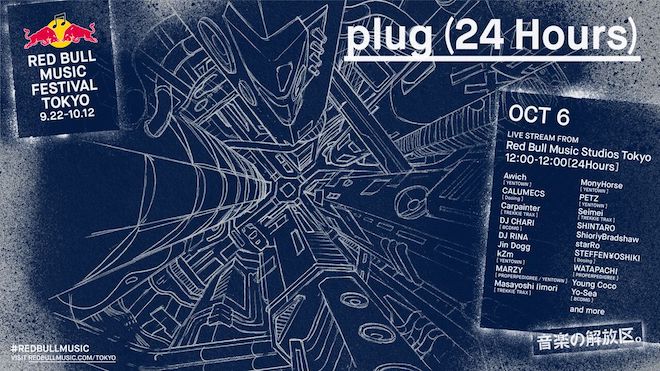 そして6日(土)、7日(日)の2日間、Red Bull Music Studios Tokyoにて、クリエイターたちによる24時間ノンストップライブ配信プログラム<plug (24 Hours)>が行われる。SHINTARO、YENTOWNやTREKKIE TRAX、BCDMG、Dosing、PROPERPEDIGREE、tokyovitaminといった、まさに東京の“イマ”を代表するクルーが集結する。