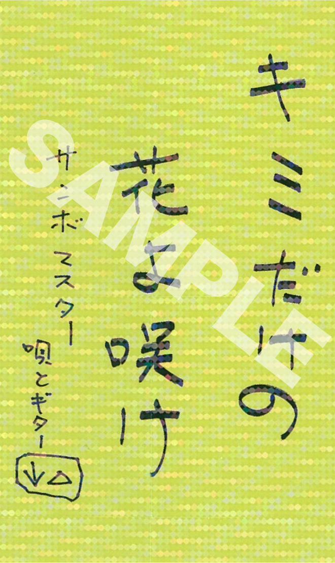また、CDシングル「輝きだして走ってく」の店頭オリジナル特典“輝く!お言葉ステッカー”のデザイン1パターンが発表された。対象店舗にて、山口隆直筆の詞がデザインされた4種類のキラキラステッカーがランダムに配布されるとのことで、どんな“お言葉”がもらえるか楽しみに待とう。