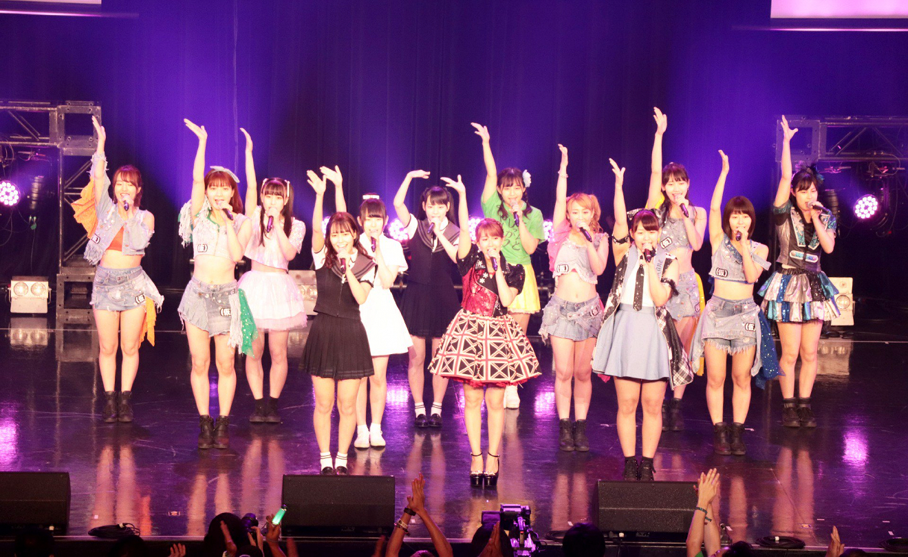 ステージ後半では、℃-ute大好きアイドル達がHOT STAGEに大集合。この日だけのコラボチームで℃-ute曲「大きな愛でもてなして」「世界一HAPPYな女の子」をカバーした。曲後には憧れの℃-ute曲を岡井と共演できたことに感極まるコラボメンバーの姿も。