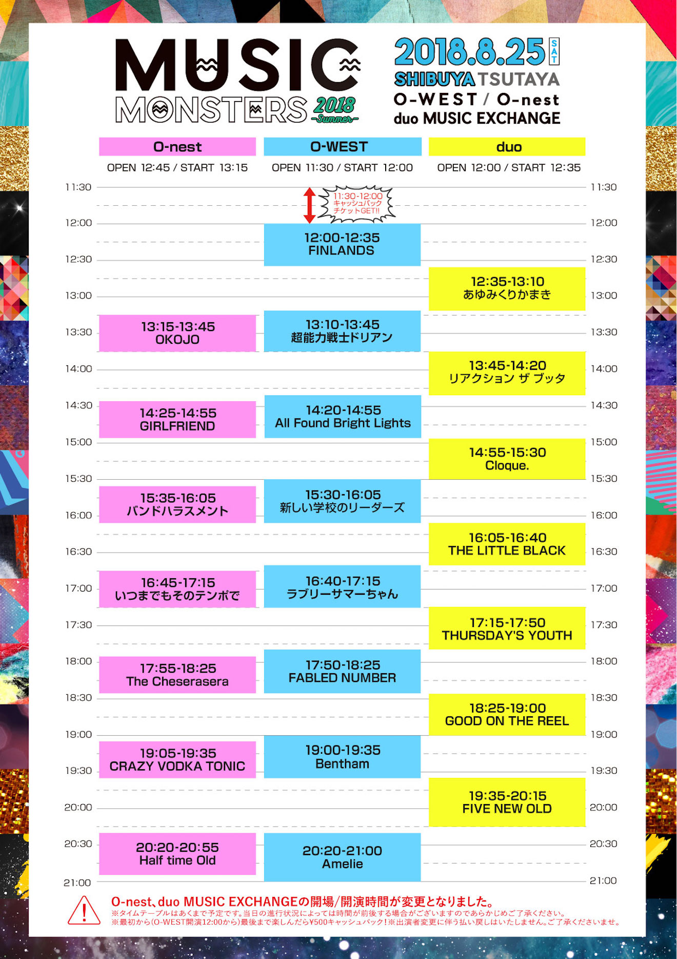 <MUSIC MONSTERS -2018 summer->、最終出演アーティスト&タイムテーブル発表