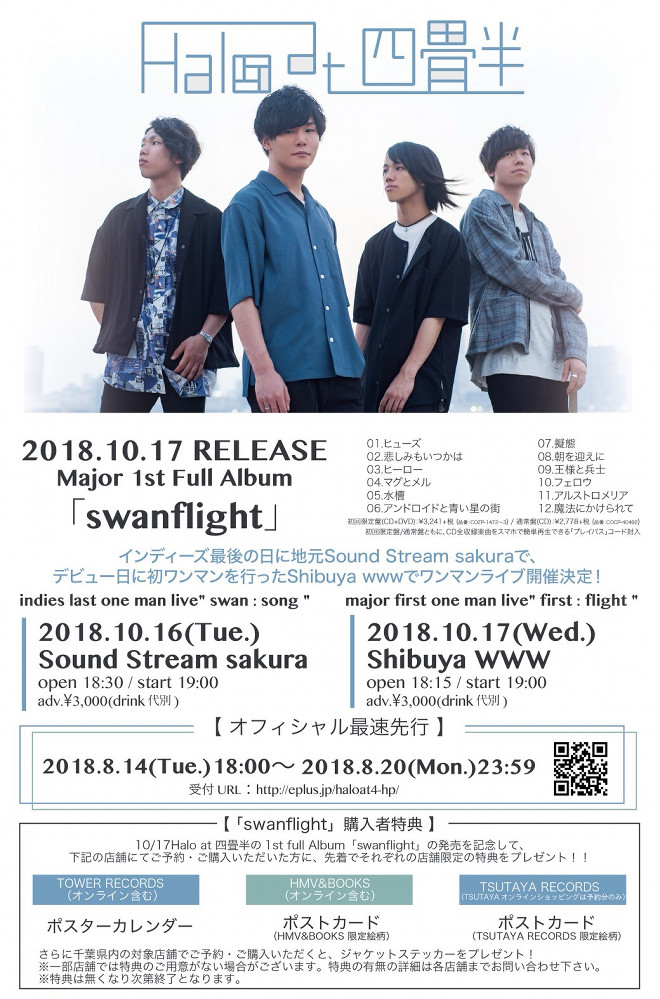 Halo at 四畳半が、メジャーデビュー・フルアルバム『swanflight』を10月17日にリリースすることが発表された。