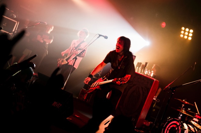 “もちろん!”と言わんばかりの頼もしい声がこだまし、放たれたのはドライヴ感たっぷり、重心低めのサウンドとJのボーカルに本能を揺さぶらずにはいられない「Go Charge」だ。ゴッチンこと溝口和紀(G / ex.ヌンチャク)も前に出て右手を振り上げて客席を煽り、太いギターを鳴らすとフロアはモッシュ状態。エネルギーがどんどんチャージされていく感覚を覚える。