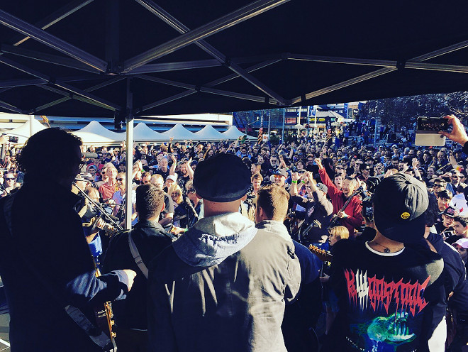 週末(8月12日)、オーストラリア・シドニーで開かれた<Sydney Guitar Festival 2018>で、新たなギネス世界記録を樹立しようと、457人のギター・プレイヤーが集まり、AC/DCの「Highway To Hell」を一斉にプレイしたそうだ。