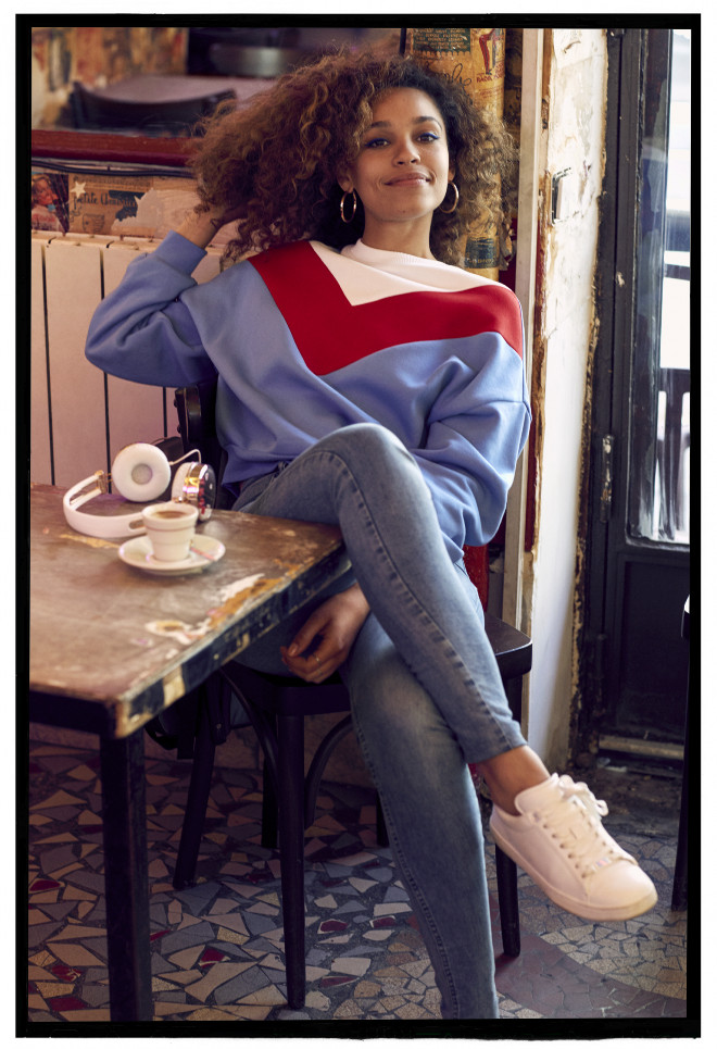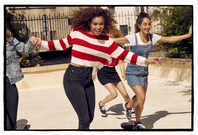 8月中旬より全国のH&M店舗と公式オンラインストアで販売されるカプセルコレクション「h&m >< music izzy bizu」には、プレッピーな雰囲気のジャンパーやワイドストライプのトップス、チェックのスカートなど、これからの季節に活躍しそうなアイテムが多数ラインナップ。遊び心に溢れたボリューム感のあるシルエットが特徴で、カラーは赤やスカイブルー、ホワイトなどが基調となっている。