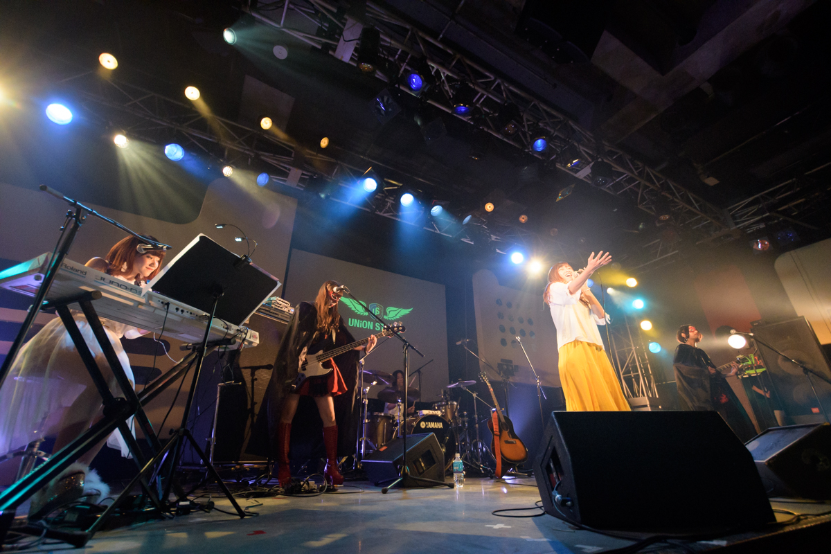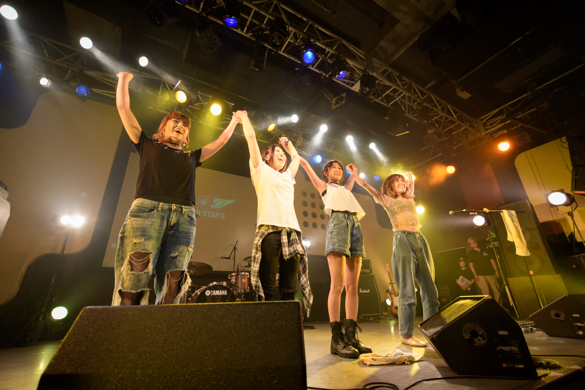 Noble rebelのライブに続いて、FUN RUMOR STORYのTaKey(vo)とMami(b)、Noble rebelのNachi(vo)とMayu(g)、RagnaRockのMaNa(dr)がステージに登場。1日限定のスペシャル・セッション・バンドとして、X JAPANの「Rusty Nail」とWANIMAの「やってみよう」を聴かせてくれた。豪華な顔合わせに加えて、笑顔で演奏するメンバーの姿やセッションバンドとは思えないスクエアなサウンドなどに客席からは歓声があがり、場内は大いに沸いた。こういうコラボレートが見れることも<UNiON STAR’S>の楽しみのひとつなので、ぜひ今後も継続してほしいと思う。