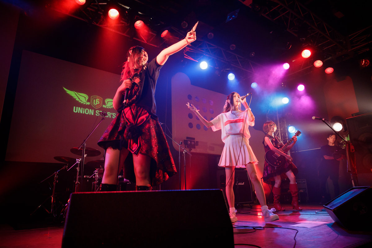 ユニオンエンタテインメント所属アーティストが顔を揃えるイベントとして話題を呼んでいる<UNiON STAR’S>。初開催となった昨年の反響の大きさを受けて、今年はガールズバンドをメインにした“RED STAGE”とダンスユニットを軸にした“BLUE STAGE”に色分けされた2DAYS開催にスケールアップ。より充実感を増したイベントとなり、昨年同様 shibuya duo MUSIC EXCHANGE で華々しく行われた。