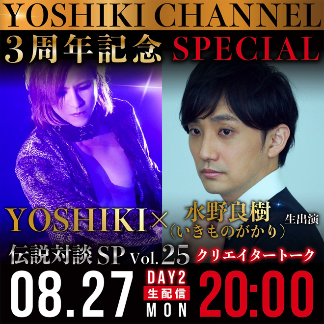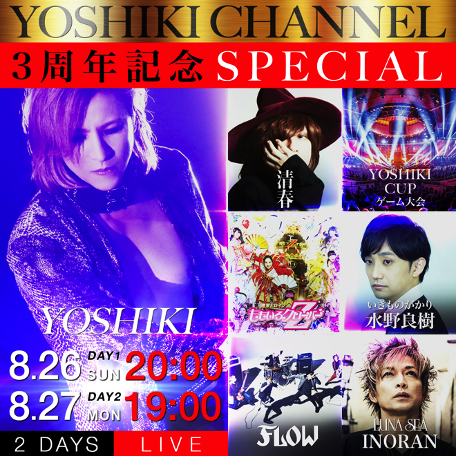 YOSHIKIのニコニコチャンネル『YOSHIKI CHANNEL』の3周年記念スペシャルが、8月25日、26日、27日の3日間にわたって放送される。