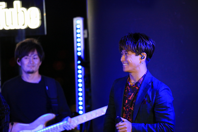 ニューアルバム『100』の1曲目を飾るサマーチューン「Bring back the summer」から始まり、バンドアレンジによって生まれ変わった初期の代表曲「SUPER LOVER ~I need you tonight~」を披露。合間のMCでは、最近YouTubeでゲーム実況配信を始めたという慶太が「チャンネル登録者数が1万人になったら、ここ(YouTube Space Tokyo)でゲームしていいって言われたので、次ここに来るときはゲームだって決めてます」と話し、オーディエンスを笑わせた。