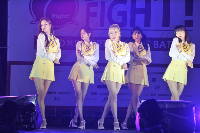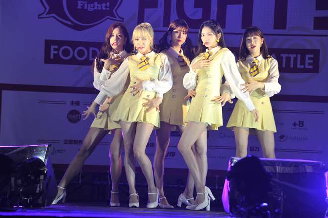 今回のイベント<Fight!~FOOD×ENTERTAINMENT BATTLE>では「Hwi hwi」「Shooting Love」など、韓国でのヒット曲が披露された。MCでは、リーダーのユジュンが「LABOUMを見に来てくれて、本当に嬉しいです!とても緊張していますが、精いっぱい頑張りますので、皆さん一緒に楽しみましょう!」と、元気いっぱいに語っていた。フランス語で「パーティー」という意味を持つグループ名のとおりに、お台場のステージはLABOUMによるパーティータイムに彩られた。2017年9月に赤坂BLITZで行われた単独公演以来、2回目となる来日を心待ちにしていたファンを熱狂させたのであった。