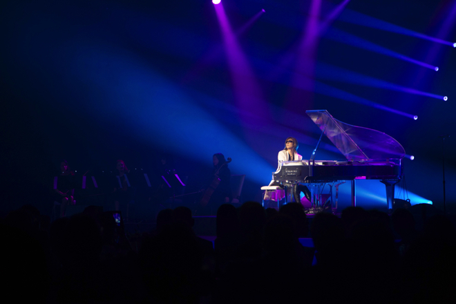 厳粛な空気漂うDolby Ballroomで行われた、YOSHIKIとストリングス・カルテットによるパフォーマンス、そしてオペラシンガーの声に来場客皆が酔いしれ、感激のあまり涙を流す人が続出。天皇陛下御即位十年の奉祝曲や、即興でアメリカ国歌「The Star-Spangled Banner」も披露され、LAに移り住み20年経つYOSHIKI自身も、アメリカンドリームを持ってアメリカにやってきた1人だと感謝の言葉を口にすると、会場からは大歓声が沸き起こった。