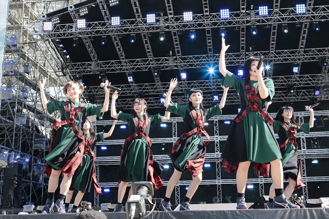 オープニングアクトのあと、BiSHが<a-nation>に初参戦。セントチヒロ・チッチが「トップバッター、ガンガンやって帰ります!」と元気いっぱいに挨拶すると、ヘヴィなナンバーにのせて激しくヘッドバンキングを繰り出すなど、ロックなダンスと歌で会場を湧かせた。