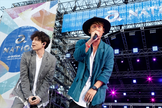 5年の活動休止期間を経て昨年再始動を果たしたCHEMISTRYも<a-nation>に初参戦。堂珍嘉邦と川畑要という全くタイプの異なる歌声が心地好く溶け合い、美しいハーモニーを届けていく。「PIECES OF A DREAM」や「Point of No Return」など惜しげもなく披露されたヒット曲の数々が、少しずつ陽が傾いてきたスタジアムに涼しい風を届けてくれた。