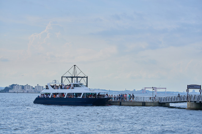 猿島までは、横須賀駅から徒歩10分で行ける三笠桟橋よりフェリーで約10分。東京湾内最大の自然島でもあるこの島では、バーベキューや釣りなどのアクティビティを楽しめるのはもちろん、島の奥には国の史跡に指定されている旧軍施設があり、その美しい情景の中を散策することも可能だ。通常は17時にクローズし、それ以降の島内への立ち入りは禁止。<Tropical Disco>開催中のみ、特別に21時までオープンしているというから、夕暮れ時のサンセットや横須賀市の湾岸の夜景も、期間中のスペシャルなものとなっている。