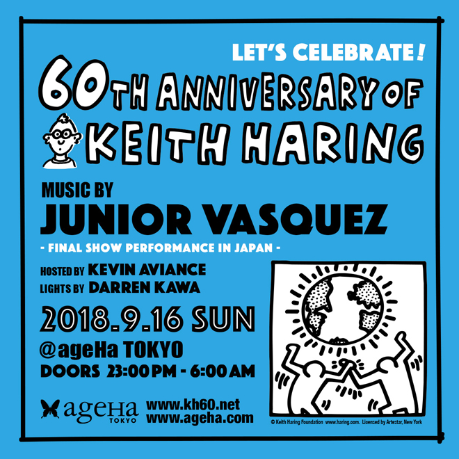 そんな二人の名前をかざした<60th ANNIVERSARY OF KEITH HARING feat. JUNIOR VASQUEZ -FINAL SHOW PERFORMANCE IN JAPAN- >。世界に旋風を巻き起こしていった彼らの記念すべき日になるに違いない。