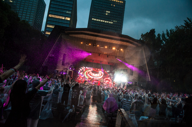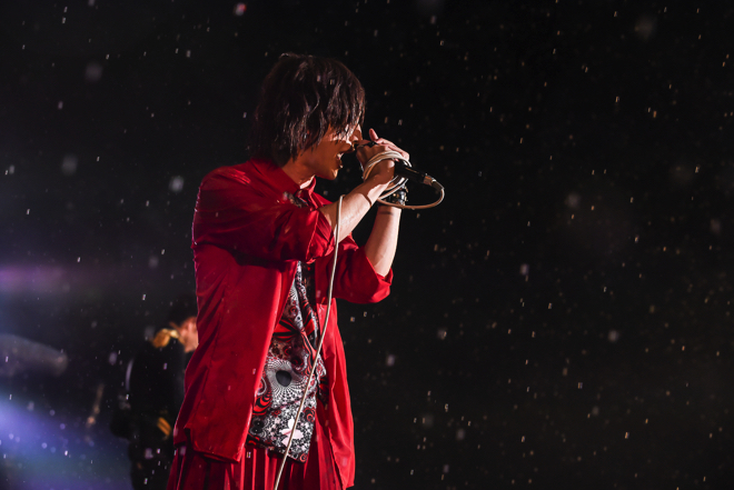 ソールドアウトとなった客席のオーディエンスもそのメンバーの熱量に応えるように、雨をものともしないパワーで迎え撃ち、会場が一体となった時には雨も止んでいた。LED映像やプロジェクションマッピングなどでエンターテインメント性あふれる演出を駆使し、クールな世界観あり、皆が笑顔になってしまう場面ありという、まさにBugLugらしい「幕の内」のようなライブは全23曲を駆け抜け大団円を迎えた。