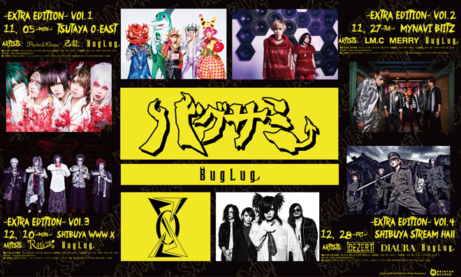 また、終演後には2つの大きな発表が行われた。まずひとつめは、今年の夏に初開催し大成功を収めたBugLug主催フェス<バグサミ>のスピンオフとも言える主催イベント<バグサミ-Extra Edition->を、11月からVol.1~Vol.4まで都内4か所で開催すること。「Vol.1」「Vol.2」のチケット先行予約はすでに開始されている。