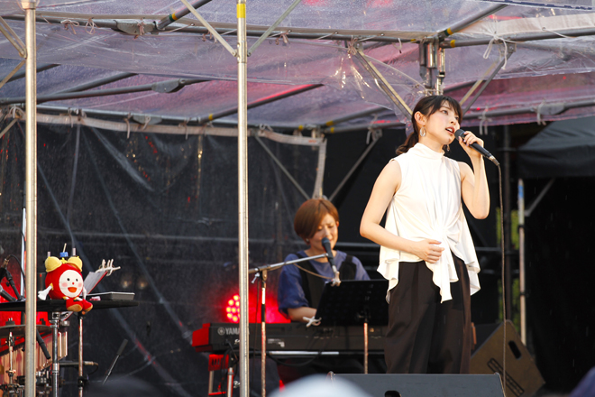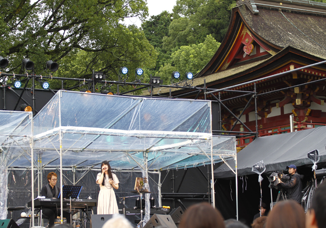 最後は、本日のメインアーティストで地元福岡出身の家入レオが大きな拍手に迎えられて登場し、「ずっと、ふたりで」からライブをスタートさせた。その艶やかな歌声は太宰府天満宮に来場したお客さんの心の中に一瞬にして染み渡った。