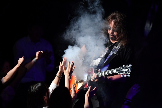 言わずと知れたKISSのオリジナル・ギタリスト、エース・フレーリーが日本上陸。2001年にはKISSの一員として東京ドームをはじめとする各会場のステージに立ってい彼だが、ソロ名義での日本公演は実に1993年以来25年ぶりということになる。今回の公演は、東京と大阪のビルボードライブにて4日間連続で連夜2公演(計8公演)を行なうというもの。その初日にあたる9月3日、六本木のビルボードライブ東京には世代を超えた熱心なファンが詰めかけ、この短期集中公演は熱い幕開けを迎えることになった。