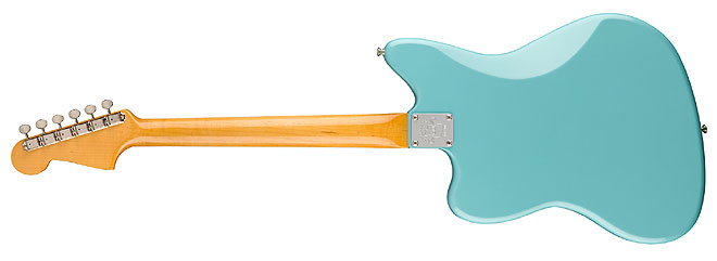 21本のナロートールフレットを装備した9.5インチラジアス’60s Oval “C”ネックシェイプは、モダンなプレイヤーたちにも最適な演奏性を提供。ロックボタン付きジャズマスタートレモロブリッジ、スクリューインアーム、ブラス製Mustangサドル、Pure VintageシングルラインFender Deluxeチューナー、デュアルウィングストリングツリー、「60th Anniversary」ロゴ入り4ボルト式ヴィンテージスタイルネックプレートなど、本製品ならではの仕様が随所に散りばめられている。