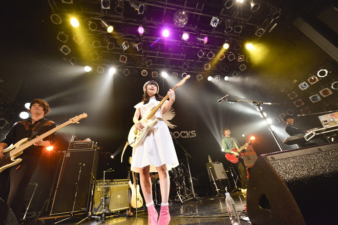次いで登場したシンガー・ソングライター“ももすももす”は、先日2019年にTRIADからのメジャーデビューを発表したばかりのアーティストである。サポートメンバーを迎えたバンド形式で行われた今回のライブは、白いワンピース姿で登場した彼女がキュートにお辞儀をして「海と傷口」へ。「隕石」に続けた「シャボン」ではスクリーンに投影された歌詞をバックに、ギターを置き両手でマイクを握る。スポットライトを浴びながら切々と歌い上げると「ありがとう」とポツリと述べ「Confession」でもリリックを投影しながら世界観を強めていく。そして「こんばんは、ももすももすです。」とサポートメンバーを紹介すると「台風の被害にあわれた皆様、地震の被害に遭われた皆様、一刻も早い復旧を心より願っています。今日はどうもありがとうございました。」と締めくくり、ラストはSpotify及びYouTubeにてデモ音源を先行公開中の新曲「うさぎの耳」を歌い上げ、ステージを去った。