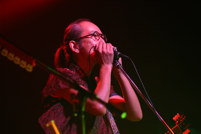 ミステリアスな「時間からの影」で観衆を深く暗い幻想の世界へ案内したかと思えば、「夜間飛行」では、和嶋の操るテルミンと鈴木の歌声が何とも言えない浮遊感をもたらす。こうした楽曲の直後に聴く「品川心中」の飄々とした語り口と物語性も絶品だ。