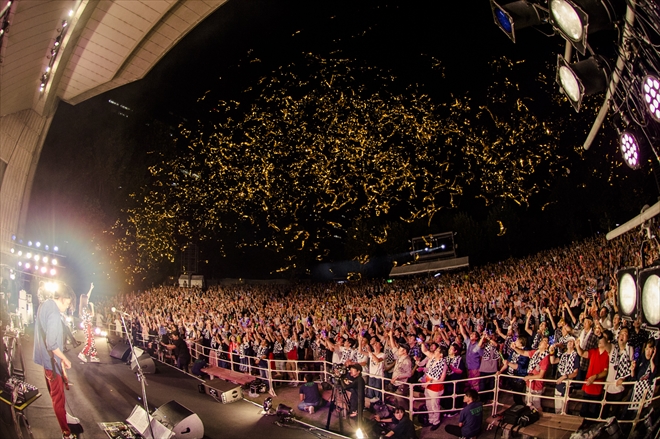 終盤は「フレンジャー」「ロケットスニーカー」「Happy Days」と、会場のボルテージが一気に上がり熱気に包まれると、アンコール前最後の曲となる「さくらんぼ」で今日1番の盛り上がりとシンガロングを見せた。アンコールでは、15年前のデビュー曲「桃ノ花ビラ」と、9月5日にリリースしたばかりの「ドラセナ」の2曲を歌い上げた。