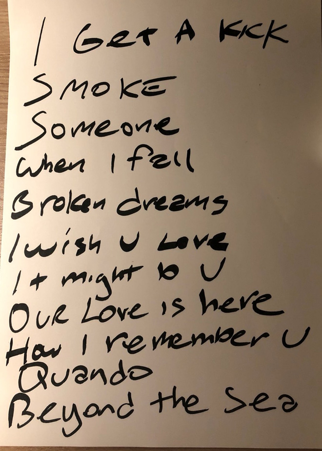 “コンニチワ”と日本語で挨拶、しっとりとしたムードで今夜のステージは始まる。「I Get A Kick Out Of You」。ピアノ/ベース/ドラムスのトリオをバックに途中から流れるようにテンポ・アップしてクロードはシナトラ味を醸し出す。フランク・シナトラのヴァージョンが多くの人々に親しまれているこの楽曲は1934年にコール・ポーターがミュージカル「Anything Goes」のために作詞作曲。同作品に出演しこのナンバーを歌っていたエセル・マーマンで注目を集め35年にBillboard誌ポップ・チャート12位を記録した。その他、同年ポール・ホワイトマン(5位)、レオ・ライズマン(20位)でもヒットしている。“きみにこそ心ときめく”。