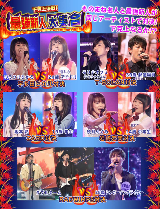 下剋上対戦!最強新人大集合のコーナーでものまね新人さんとものまねプロが対決します。