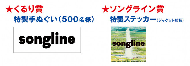 また、アルバムリリース記念企画として「オータムジャンボくるり in 京都音博」の開催も発表されている。こちらは音博当日、『ソングライン』に封入されているイベント参加券を会場内CD販売ブースで提示すると、もれなくスペシャルグッズが当たる抽選会に参加できるというもの。500本限定の「くるり賞」では、特製手ぬぐいを入手することができる。