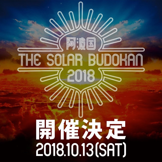 佐藤タイジ (シアターブルック) がオーガナイザーを務めるロックフェス<THE SOLAR BUDOKAN>が2018年は中津川のみならず、<阿波国 THE SOLAR BUDOKAN 2018>と題して、10月13日に徳島 月見ヶ丘海浜公園内特設ステージで初開催される。このたび同フェスのタイムテーブルが発表となった。