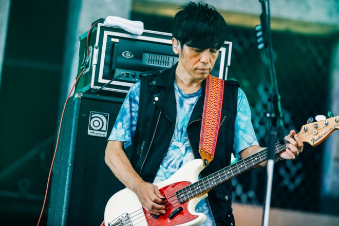首筋に血管を浮き立たせながら絶叫すると、フィールドからは一斉にこぶしが突き上がる。森純太(G)が繰り出すギターが最高にカッコよかった「START」から、「ワンツースリーゴー!」の掛け声を合図にバンドの衝動が爆発した「MY GENERATION」へ。’90年代のバンドブームを牽引した4人組が鳴らす渾身の音が一切色褪せないまま、房総のステージに熱く鳴り響いていった。
