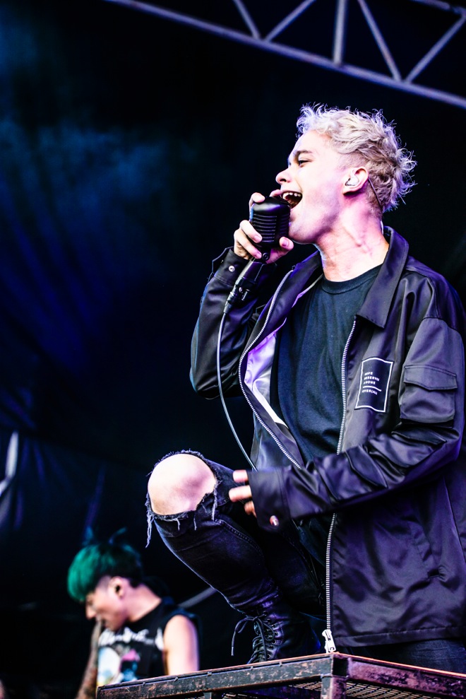 直前にYASSAI STAGEを湧かせたSiMを引き合いに出して、「SiMがやってたやつをやります。全員座ってください!」と言うと、フロアに集まったお客さんを一斉に座らせて一斉に大ジャンプ。さらに、「TO BE ALIVE」では、「もっとデカいのを見せてくれ!」と言いながら、二度目のウォール・オブ・デスを巻き起こすという容赦ない攻めのステージを繰り広げた。