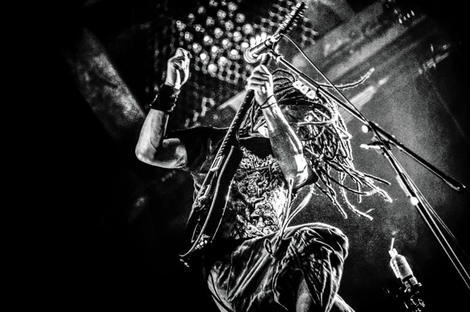 中盤は、「爪爪爪」や「メス豚のケツにビンタ(キックも)」でフィールドに巨大なサークルを作り上げ、内なる怒りや声にならない苦痛を燃やし尽くすような衝動的なナンバー「川北猿員」で、会場の熱狂はさらにヒートアップ。