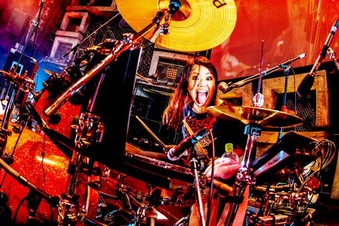 上ちゃん(4弦)の超絶ベース、ナヲ(ドラムと女声と姉)の高速かつパワフルなドラムプレイ、そして、ダイスケはんとマキシマムザ亮君(歌と6弦と弟)が繰り出すカオティックなシャウトと主旋律が暴れ出し、轟音と歓声、狂気と嬌声とが無秩序に渦巻く、禍々しいホルモンの空間が出来上がっていった。