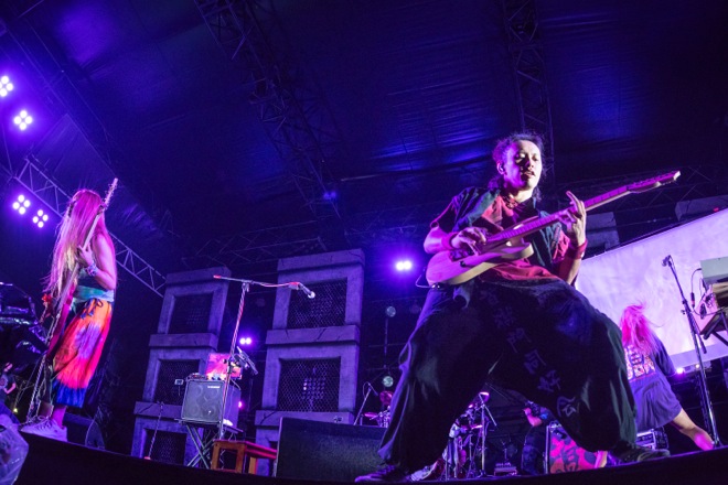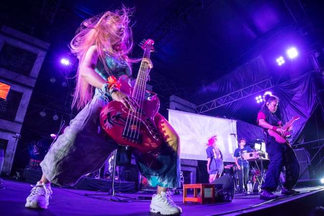 海に面した会場にピッタリな日本の魚をフィーチャーした「島国DNA」ではマグロのバルーンが客席をクラウドサーフするカオスなシーンが出現。“あいたくて”ならぬ「歯痛くて feat. Dr.COYASS」に続き、新曲「はたらきたくない」では、ハードエッジなサウンドでビシッとブレイクをキメて、“バイトだるい。起きたくない”などとぼやいて“働きたくない”とリフレインするが、演奏が超カッコいいから、そのギャップすら心地よい。