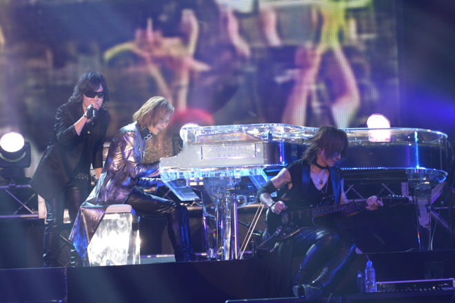 「MIRACLE」のイントロから始まったこの日のステージは、「RUSTY NAIL」「HERO」「FOREVER LOVE」と名曲が続く。途中、YOSHIKIとToshlが楽しそうにトークの掛け合いをするなど、仲睦まじい姿が見られる場面も。「紅」では突如大スクリーンの映像にHIDEが現れ、 会場からは悲鳴にも似た大歓声が沸き起こり泣き出すファンも続出。