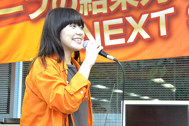 ここで、和田社長が挨拶。「大城美友ちゃん、日本クラウンのアーティストですから、うちの身内です。メジャーデビューということで、カラオケの方も応援してあげてください」と、後押し。さらに、渡邊本部長より「大城さんの歌声をライブハウスShibuya eggmanで何曲か聴いたとき、パワフルな歌声、エネルギッシュなパフォーマンスということで、まさに“沖縄の子”という感じを受けました。そのときはまだデビューは決まっていなかったのですが、10月10日にリリースすることになりました。しっかりと押していきたいと思います。そして、みんなでマンゴーを食べたいと思います(笑)。みなさん、カラオケに行ったら大城美友ちゃんの曲を歌うよう、よろしくお願いします」と、社内を挙げてのバックアップ体制であることが告げられた。