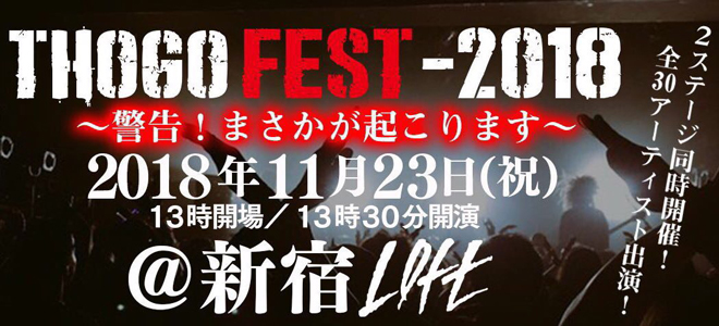 11/23(祝)新宿ロフトで開催が決定している「トーゴーフェス2018」の第3弾出演者が発表になった。