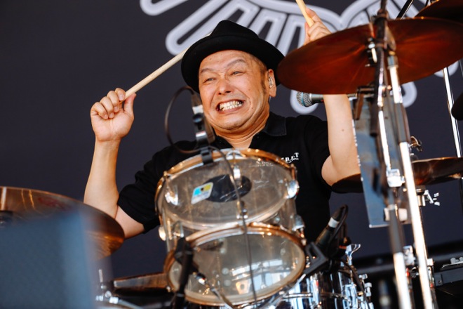 続けざまに「明日への扉」をドロップすれば高ぶったオーディエンスが前へと詰めかけ、増子の「飲めー! 昼間から飲めー!」という絶叫から放った「酒燃料爆進曲」でその盛り上がりをさらに加速。“朝焼けの空”を“中津川の空”と変えて歌う粋な計らいも嬉しいところだ。