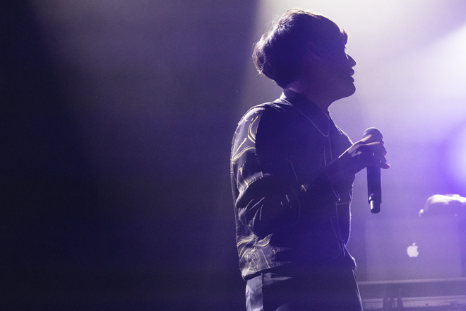 ほぼMCなしで、「Siren」を含む4曲を立てつづけ、ひたすら歌いつづける彼。甘いフェイスからは想像もつかないほどの歌唱力をみせつけ、多幸感あふれるライブで会場全体を魅了。その不思議な魅力に惹きつけられ、見入っている女性ファン多し。アーバンメロウな「眠らない街」で、もう卒倒寸前。