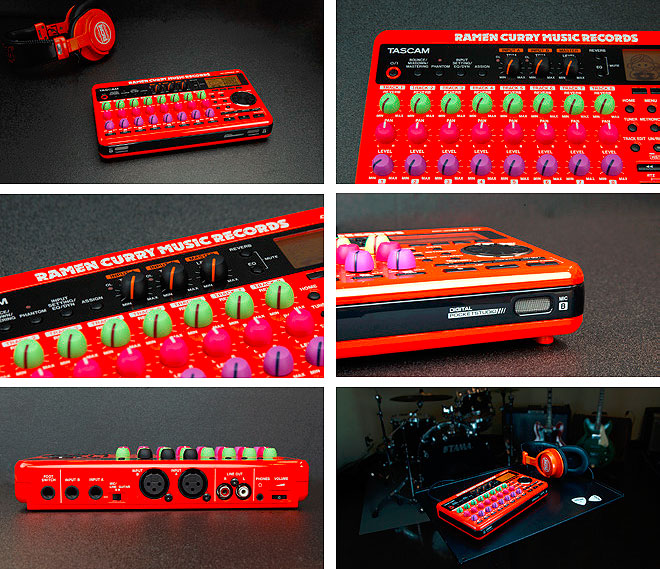 「DP-008EX-OT」は、奥田民生の世界観をモチーフにデザインした8トラックデジタルMTR(Multi Track Recoder=多重録音器)。通常モデルがブラックなのに対し、コラボモデルは本体は鮮やかなオレンジでツマミもビビッドなカラーを採用。液晶画面にはレーベルマスコットの“ヘロ・ディギン”が現れるなど、随所に奥田民生モデルとしてのこだわりが反映されている。