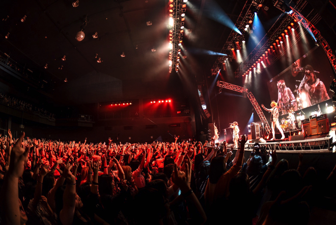 LEDヴィジョン、レーザー、トーチ等、盛り沢山の演出と特効が盛り込まれた今回のライブ。4人のステージングもそれに引けを取らない。激しいプレイと時折見せる満面の笑顔のギャップが魅力のきょうのすけ(Dr)、クールな表情で確かな技術を見せつけるユエ(B)。ステージを飛び回り溢れる感情を身体全体で表現するreiki(G)。そして圧倒的歌唱力で内からあふれる感情を吐き出す、来夢(Vo)。ライブ本編中は「救われたいやつだけついてこい」と煽って突き放しながらも、最後は「愛してる」の言葉で観客の心を揺さぶった。