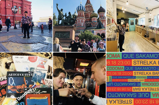 翌日はゆっくり寝て、7月にベルリンで会ったロシアチームの友達と合流。モスクワのクルーに街をいろいろとガイドしてもらいました。モスクワはなんとなく日本より栄えている……そんな風に感じました。ランチをしてから早速Digging開始。バイナルショップ“Dig Store”の店員さんに、ロシアン80sをリコメンドしてもらい、いろいろと視聴して7枚ゲットです。ソビエトサウンドは今まで聴いたことがないようなレコードばかりで、かなりよい収穫ができました。お店のスタッフさんが記念撮影したいとのことで思い出ショット。