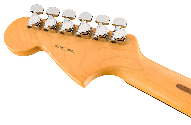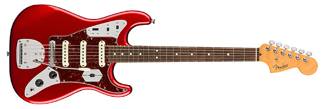 トラディショナルな5ウェイスイッチング、リアピックアップ用トーンノブの他、ボディ上部のスイッチを利用し、ミドルピックアップのみを使用したり、強烈なサウンドを生み出すために3基のピックアップを同時に使用することが可能。オリジナルのヴィンテージ感を忠実に再現したAmerican Vintage ’65 Single-Coil Jaguarピックアップ3基は、真の60年代サウンドを生み出す。