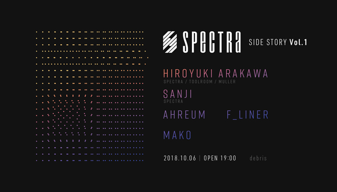 Hiroyuki Arakawa率いるレーベル“SPECTRA”のパーティ<SPECTRA LABEL SHOW>のスピンオフパーティの第一回目が、<SPECTRA SIDE STORY>と称して、代官山に今年8月出現した、クリエイティブスポット“Debris”で開催される。
