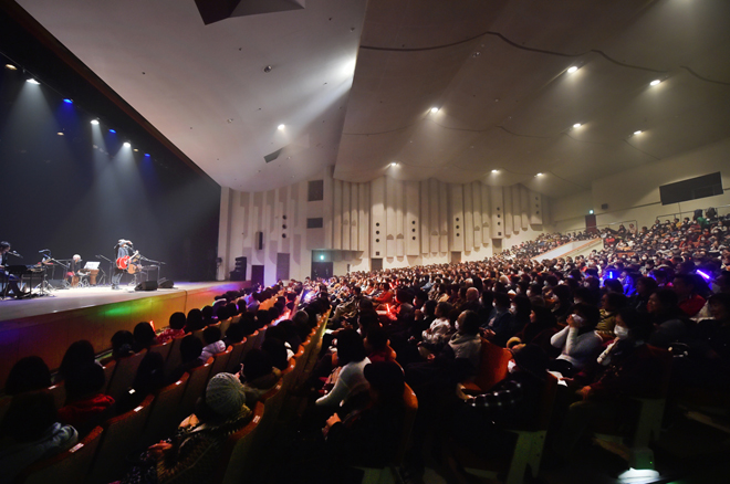人口が3万人という志布志市。会場にはおよそ1000人が集まり、2013年のアリス再結成ライブ以来の満員御礼となった。