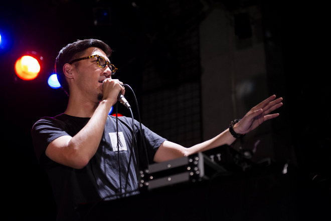 幕が開き、まずはtofubeats。軽く挨拶程度のMCをしてからは約1時間ノンストップのセットに突入した。10月3日に4作目のアルバム『RUN』をリリースするタイミングでもあり、「ふめつのこころ」など新曲を随所に交えながらの1時間は、DJ的に言うと“ロング・セット”だが、これまで以上に“ライヴ”であることを感じさせるものだった。それは、サード・アルバム『FANTASY CLUB』以降にぐっと明確化した“歌”の要素も丁寧に織り込まれていたという印象でもあるし、中盤での『RUN』からのインスト・トラックの流れにもビート・ミュージックに身を任せたダンス・モードを作り出すのではなく、もっと物語的に音をうねらせてゆく意図が見える。その流れの中で聴く「Don’t Stop The Music」や「水星」が、いつも以上にドラマチックに感じたのは本当だ。