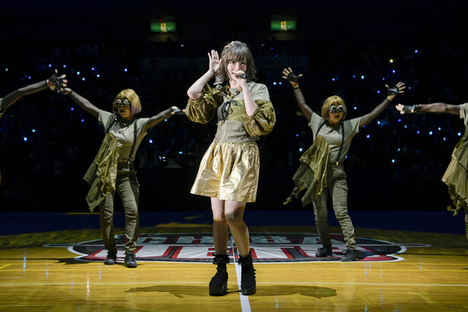 また歌唱後にきゃりーぱみゅぱみゅは、「試合中は選手の皆さんのプレイに圧倒されながら見ていました。神聖なバスケットコートでパフォーマンスさせて頂いて、とても嬉しかったです。登場する直前はとても緊張しましたが、皆さんが喜んで笑顔で見て下さったので良かったです!」とコメントを寄せた。