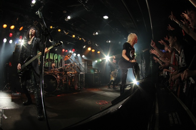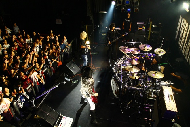 10月8日(月・祝)の仙台darwin公演は前週に引き続き台風の影響も心配されたが、「すげえ盛り上がってんな!」とkyo(Vo)がMCで語ったように、異様な盛り上がりを見せた。本ツアーでは、SEELA(B)とTetsu(Dr)による圧倒的ド迫力のリズムと、CIPHER(G)のソリッドかつ妖艶なメロディが冴えわたる。レア曲を含むセットリスト構成と、新たに生み出されたOPENING SEから最終曲まで、見所満載の内容だ。岐阜振替公演を含む、残り10公演はチケット残少とのこと。お早めのチェックを。
