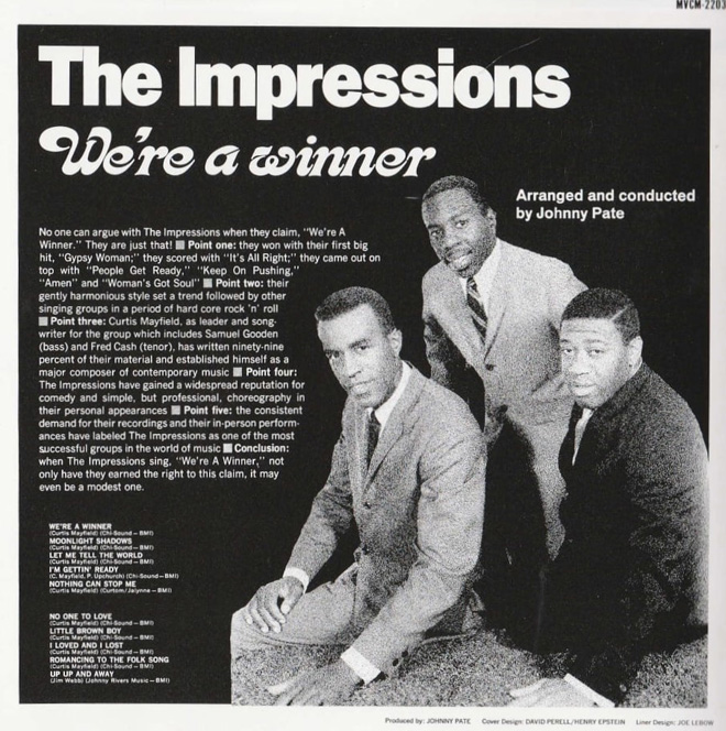 Mike:ジ・インプレッションズは、テネシー州チャタヌーガで1956年に結成されたザ・ルースターズから始まったんですよね? アーサー&リチャード・ブルックスの兄弟とサムが結成したグループとして…。